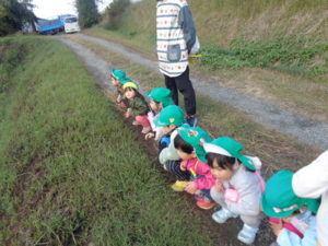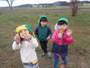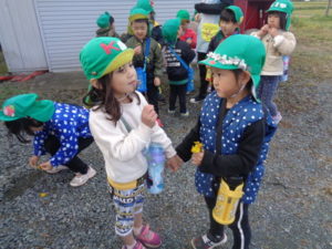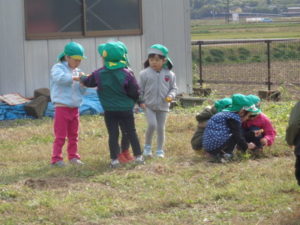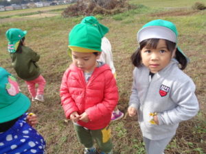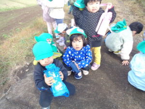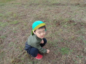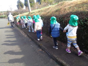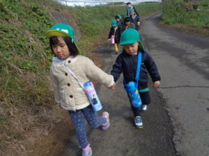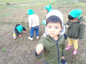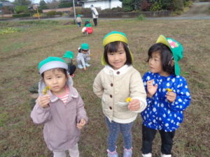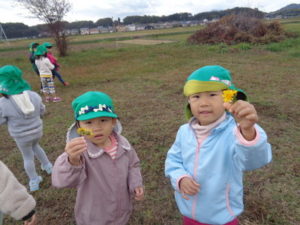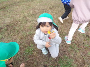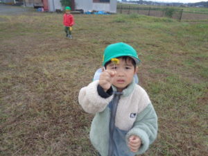 帰りに公民館の広場でたんぽぽの花を摘んだり、走り回ったり楽しみました。