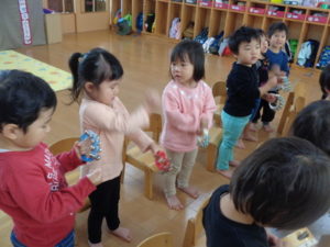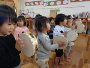 今日は、楽器遊びをしました。
