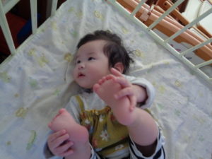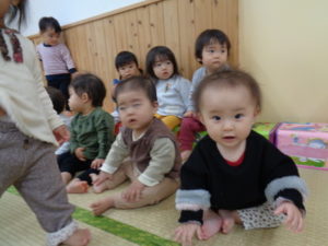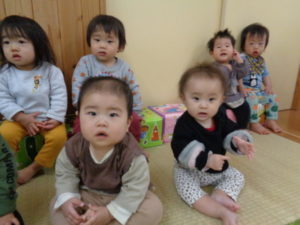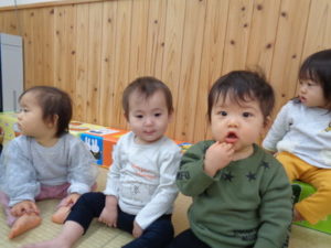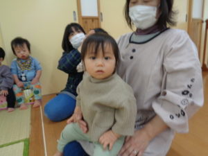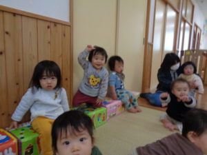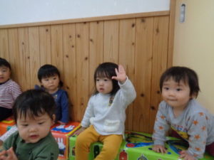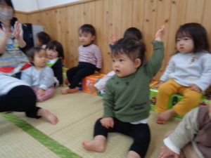 お集まりでの”お返事ハ~イ”では、とっても上手に手を挙げてくれますよ🎵