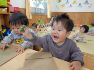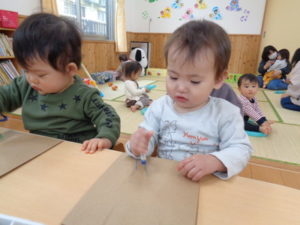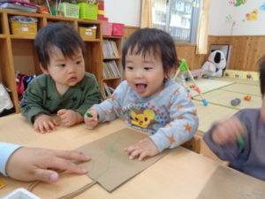 自分の番になると、嬉しそうにお絵描きをして楽しみました。