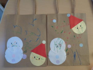 お集まりをした後、「クリスマスバック🎄」の製作をしました。
