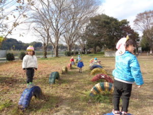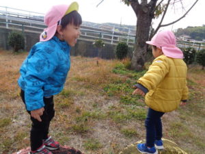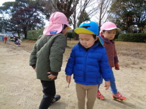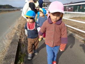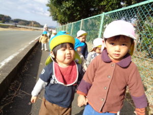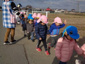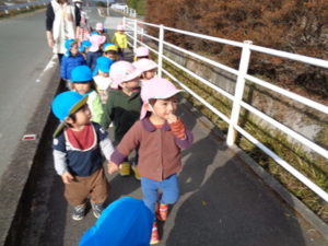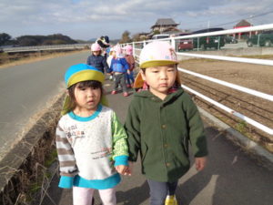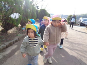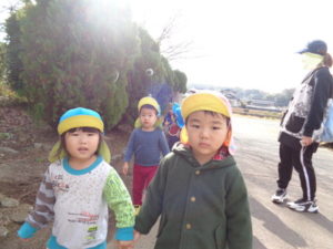 うさぎ組🐇の子ども達は、りす組🐿さんと手を繋ぎ、