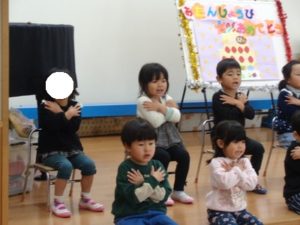 一緒に「ギュッ ギュッ ギュッ~」と歌を歌いました。