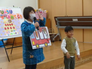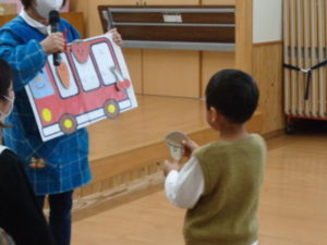 「お弁当🍱バス」では、誕生児さんに手伝ってもらい