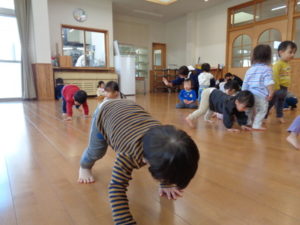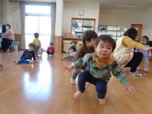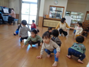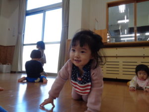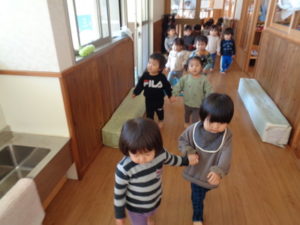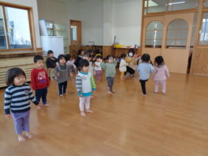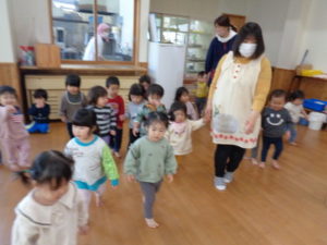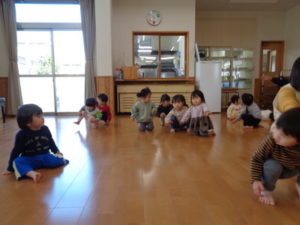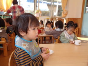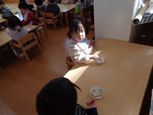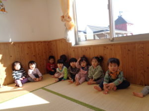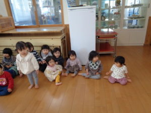 今日は、おやつを食べてから畳に座ってお集まりに参加して