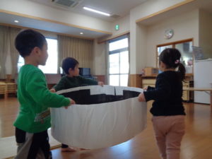 実際に小道具を持ち、少し戸惑う姿も見られましたが、発表会に向けて一生懸命頑張りました。