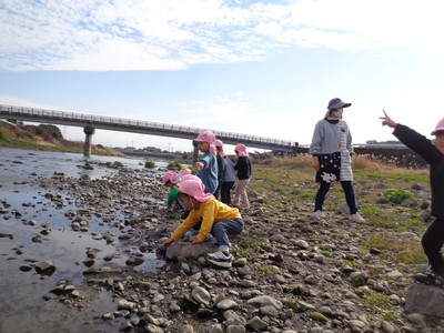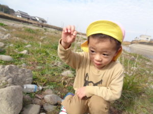 大きい石を見つけたり、てんとう虫やどんぐりを見つけて