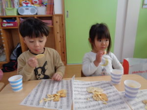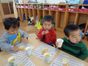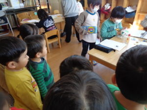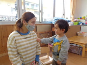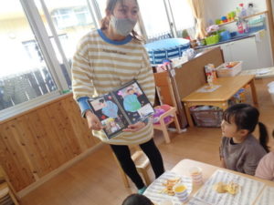 今日で、先生と長い間会えなくなるという実感が湧かない様子の子ども達でしたが、一緒にお菓子を食べたり、先生に質問したり・・・とても楽しんでいました❣❣