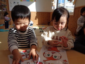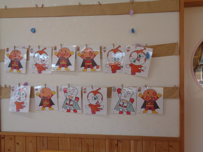 今日は、アンパンマンに出てくるキャラクターを自分で選んで、「福笑い」をしました。