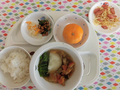雑煮は園で園長先生達が丸めて作って下さった餅を