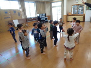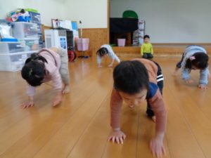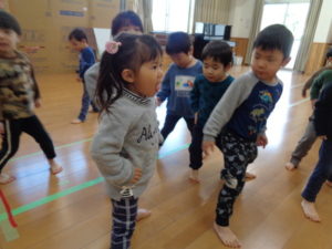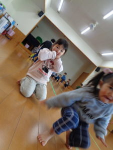 今日は久しぶりにランチルームで、運動遊びをしました。