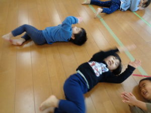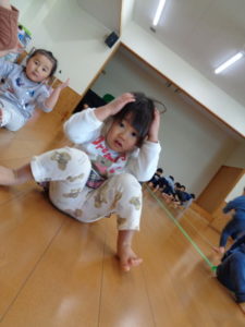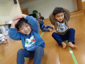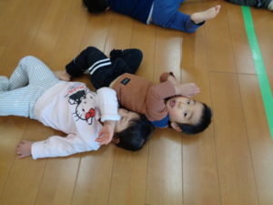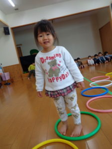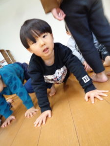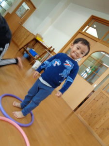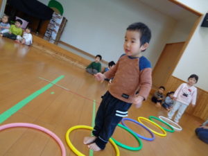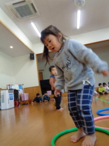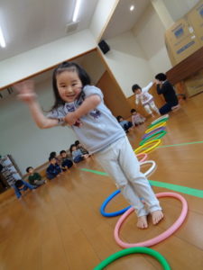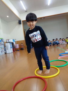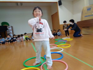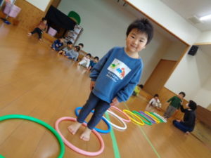 フープを両足でジャンプしたり、色んな動物になりきったりと楽しみながら沢山身体を動かしました❣