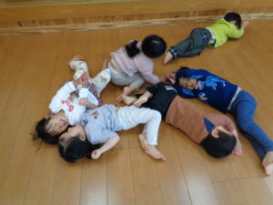 お話を聞く時は、カッコよく体育座りで静かに聞く事が出来ていました。