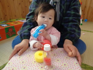R-1の容器で「ジュース屋さんごっこ」
