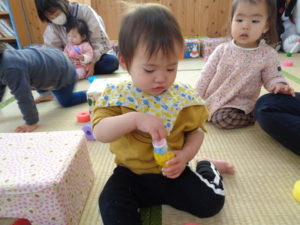 真剣な顔で取り組み、出来るたびに保育士が「わぁ~✨」と歓声があがりました🥰