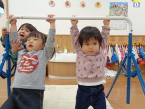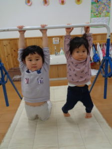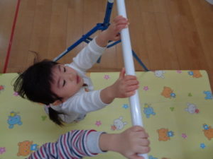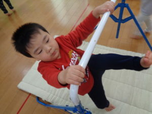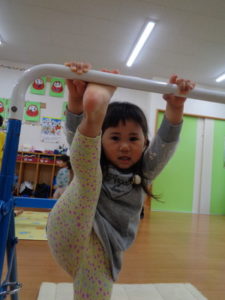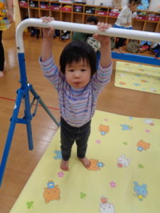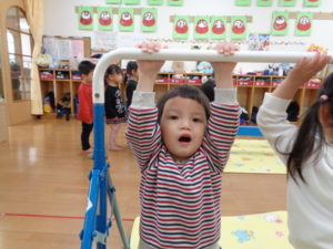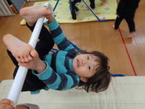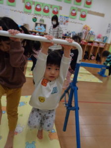 平均台や鉄棒は「怖~い❣❣」と少し怖がる子も・・・。