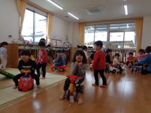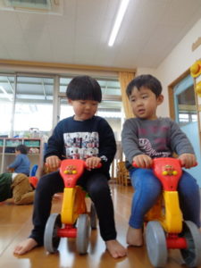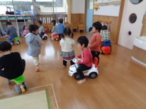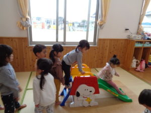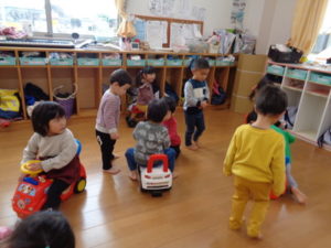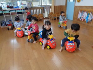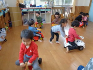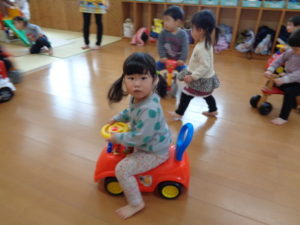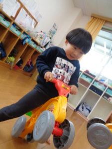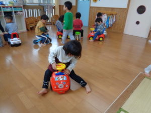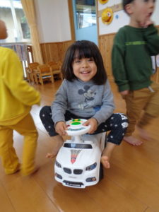 1番人気はコンビカーで、取り合いになる事もありましたが、「貸して❣」とお友達に伝え順番に遊んでいました。