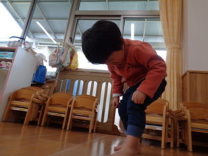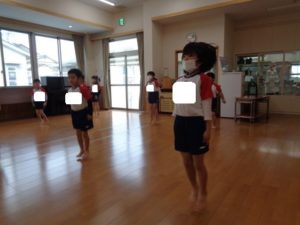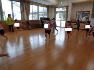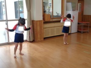 手を前で交差して跳ぶ事が難しく、苦戦する子ども達。