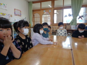 その後、クラスで卒園式のお別れの言葉を考える為、まず皆で一年間の振り返りをしました。