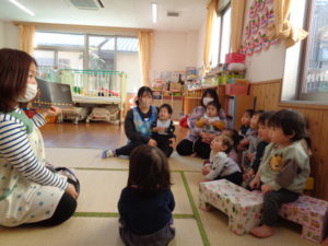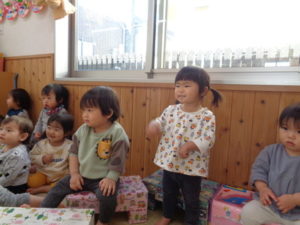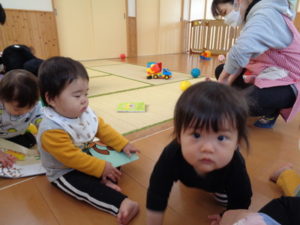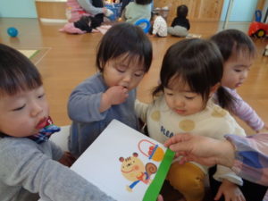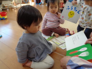 お集まりでは、お返事がとっても上手になり、絵本も集中して見ています。