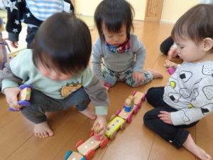 モクトレインなど色んな玩具で遊びながら、おだいりさま・おひなさまになって記念撮影をしました。