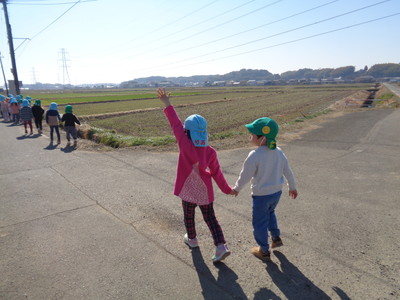 今日は、くま組、ぱんだ組はお散歩に出掛けました