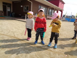 初めての事だったので、みんな出来るか不安だったのですが、楽しみながらバトンを持って走る事を少しだけ理解できた様子でした。