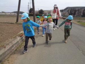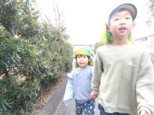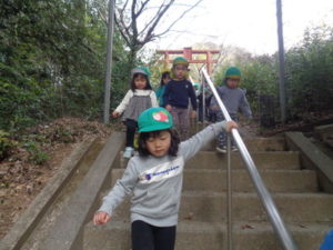 その姿をみて、岡の神社に行って身体をいっぱい動かそうと、くま組🐻一緒にお散歩へ❣❣