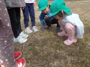 「鬼ごっこしよう」と早速楽しむ子、「先生、お花見つけたよ🌼」と大事そうにお花摘みをする子と、思い思いに楽しみました😉