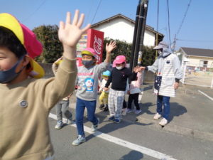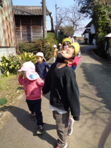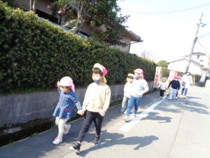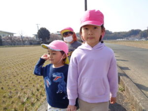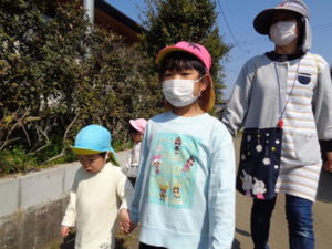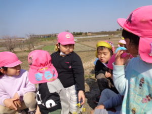 紫の花は”ホトケノザ”、薄ピンクは”梅の花”と、沢山の花の名前を教えてあげて、”春”の季節を味わう子ども達でした🎵