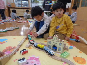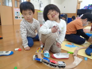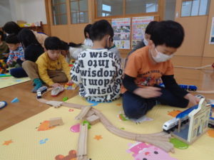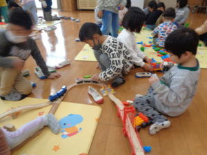 他にも、モクトレイン・ジョボブロックなど、自分の好きなコーナーで時間いっぱい遊んで、あと少しで卒園してしまう「きりん組さん🦒」との触れ合いを楽しみました。
