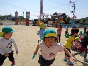 今日は、縦割りグループに分かれて、リレーの練習をしました。