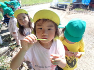 花が終わり種になった菜の花や、大きくなってしまったタケノコを見て、みんなで「すごいねー❣❣」と言い合いました。