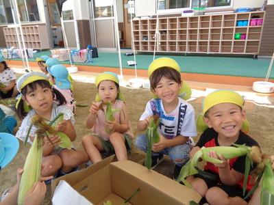きりん組さん🦒 🌽とうもろこし皮むき・ぶんぶんゲーム・アジサイ製作🌽