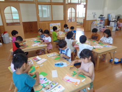 きりん組さん🦒 🌽とうもろこし皮むき・ぶんぶんゲーム・アジサイ製作🌽