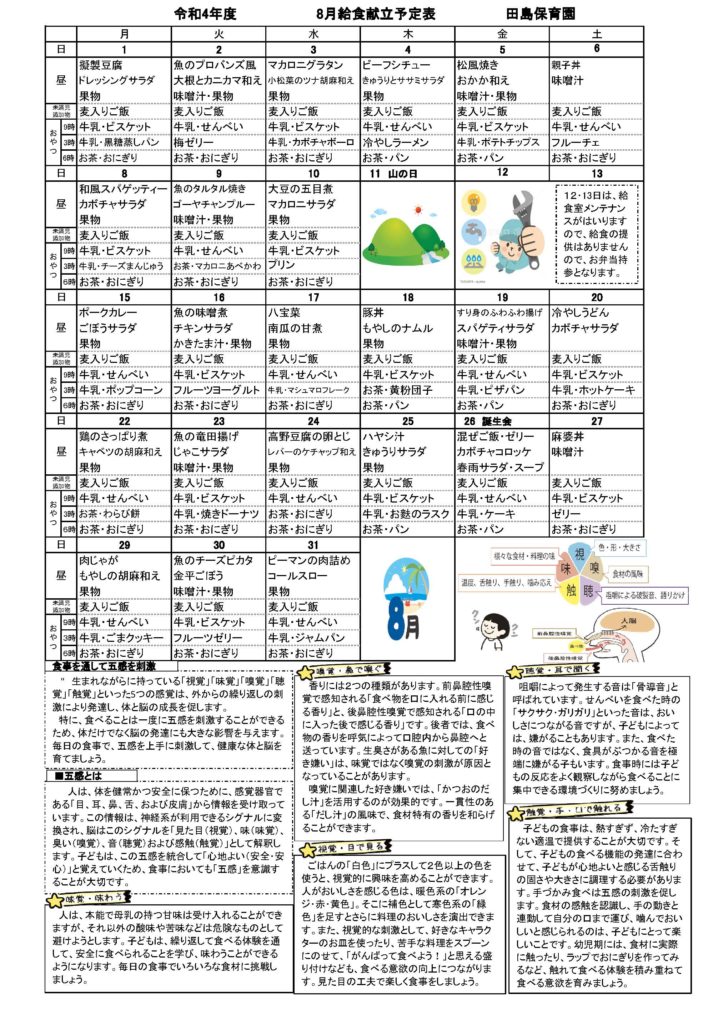 令和4年度 8月献立表