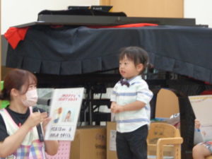 最後はサザエさん一家の登場で、ダンスを披露してもらいアンコールが出る位とっても盛り上がり楽しく誕生会を終えることが出来ました。