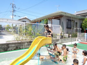 潜ったり、水をかけあったり、泳いでみたりと、保育園最後のプールを思いっきり楽しんでいましたよ😊