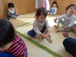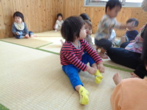 履いている途中で「出来ない~」と泣いて悔しそうにしている子どももいましたが、