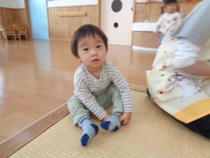 保育士と一緒に途中まで履きそこから自分で上にあげようとする姿が見られ、出来た~と、とてもうれしそうに