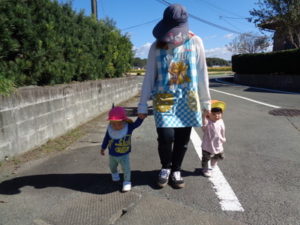 歩行が安定してきた子どもは、行きや帰り道を歩いてみました。