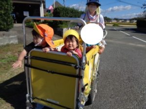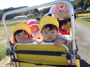 丁度稲刈り🌾もあっていたので、コンバインを見た子どもはジーっと見たりバイバイ👋と手を振ったりする姿も見られました。