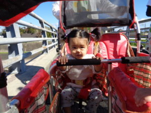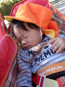 ベビーカーに揺られて気持ちよくなり、寝てしまう子どももいました。