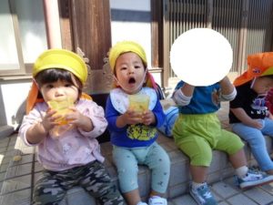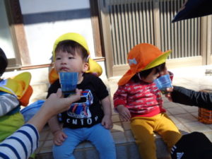 公民館に着くと、階段に座ってみんなでお茶タイム🍵🎶