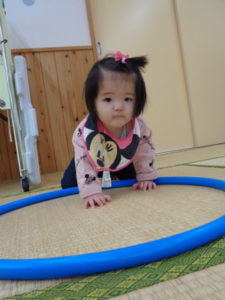 今日は少し肌寒かったので、室内でフラフープに触れて遊びましたよ🎶