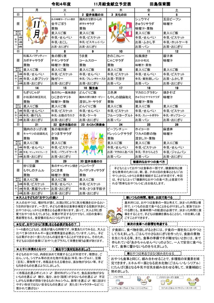 令和4年度 11月献立表
