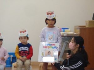 今日は、11月生まれのお友達と、10月のお誕生会に参加できなかったお友達の誕生会を行いました。