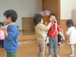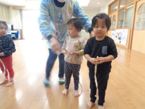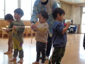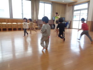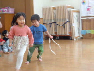 ランチルームで、初めてのしっぽ取りゲームをしました。
