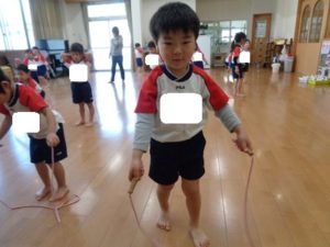 朝や夕方の戸外遊びで、縄跳びをしているので、少しずつ跳べるようになってきました✨