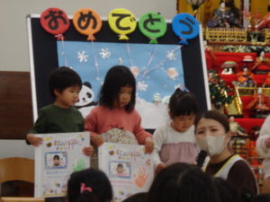 その後は大型絵本をみて2月生まれの誕生会は終了となりました。
